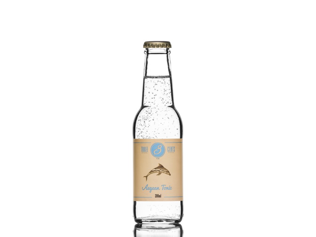 Aby Three Cents vylepšili chuť svého toniku o ducha Středomoří, přišli s opravdu autentickým produktem. Řecký tonik, který si můžete vychutnat samostatně jako nápoj nebo jako směs do long drinků a koktejlů, Aegean Tonic. Three Cents Aegean Tonic Water je lehký a osvěžující jako vánek Středozemního moře. Příjemný revitalizační tonik vyrobený z vysoce kvalitního přírodního chininu, okurky, bazalky a dalších bylin, koření a citrusů z řecké půdy.Jeho chuť je tak vynikající a jedinečná, že byl na udílení cen Bar Convert v Berlíně zvolen nejlepším destilátem/barem. Etiketa s kresbou delfína odráží jeho hravý a temperamentní charakter.